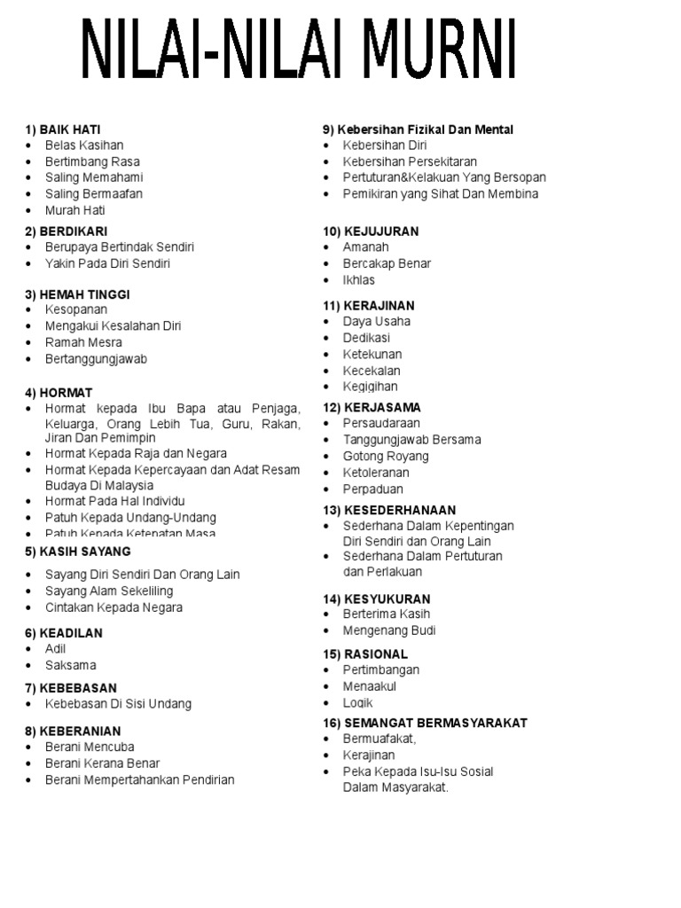 Nilai Murni Life Long Sharing Malay Language Nilai Reading Comprehension
